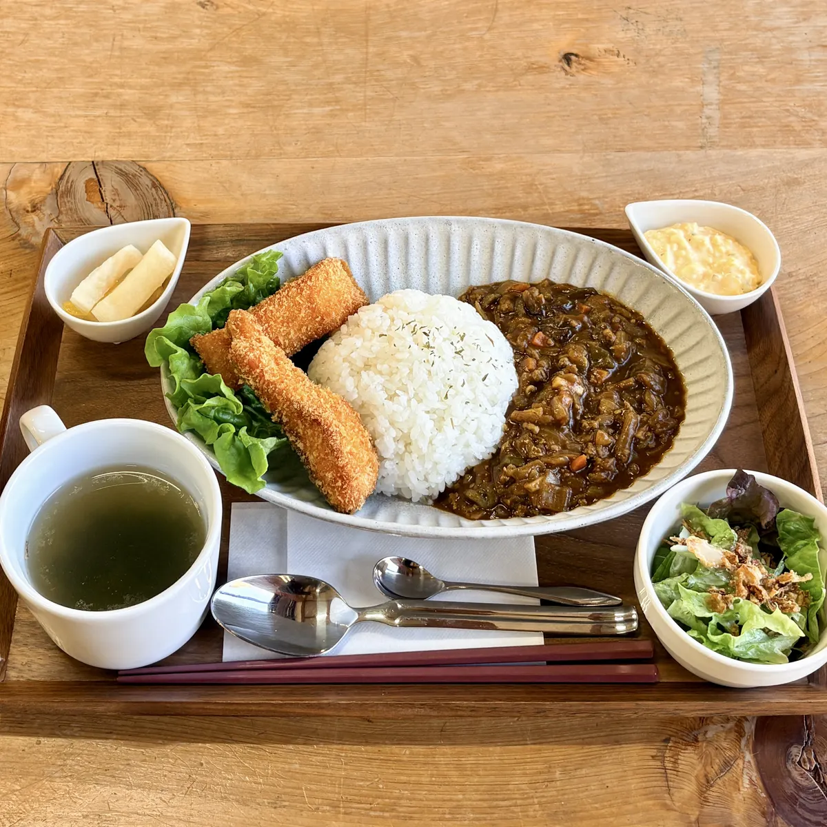 お目当てはこちら!ヤマメフライのよくばりプレート、キーマカレーとヤマメフライのコラボレーションです!