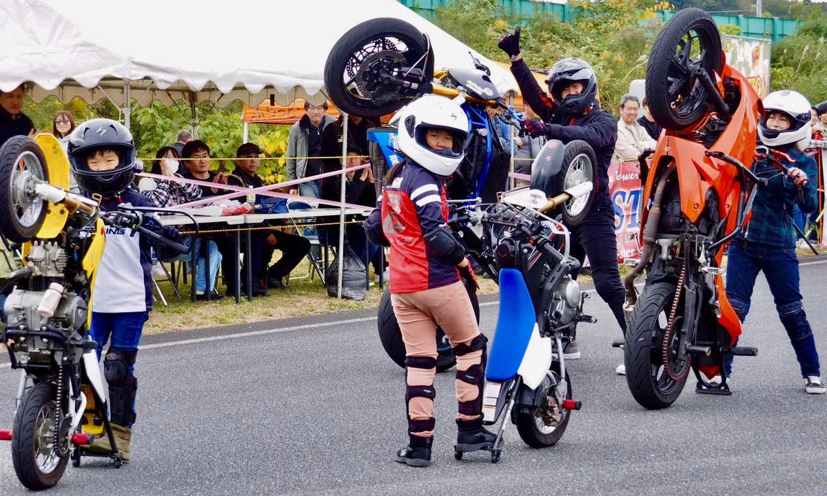 今年は「選べるスタントショー」がとても好評でした。以前は広いスペースで爆音で大暴れがエクストリームバイクのイメージでしたが、2025年は小スペースで静かに、そして世代を問わず楽しめる新ジャンルバイクショーも選べるようになり、とても高評価をいただきました。詳しくはチームブログにも書きましたのでご興味がございましたらご覧くださいませ。
