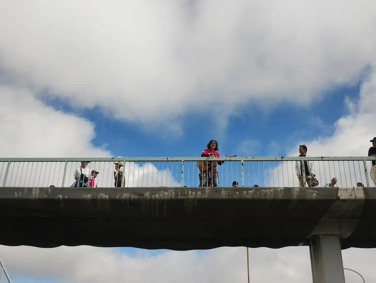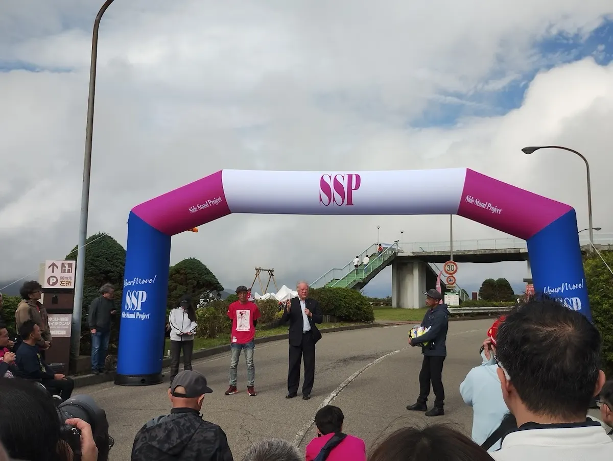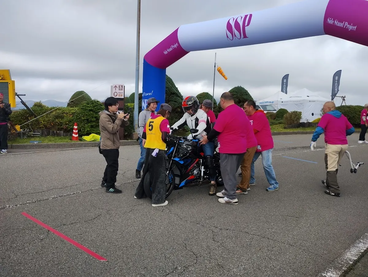パラモトライダーの方々の出走前に歩道橋の上からサイドスタンドヒーローを歌ったり!