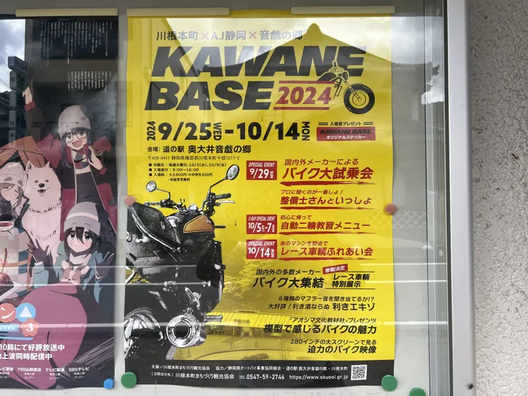 え〜スタンプ押し忘れたのでリベンジしてきました。今は月末までゆるキャン△のスタンプラリー、謎解き🤓とギター🎸展示やってます。あと今後バイクイベントのKAWANE BASEというのがあるので行こうかなと思ってます😁行くまでの道、64号線から(向谷IC)か、473号線から(大代IC)かなんだけど64号線の方が自分は走りやすいと思います。道細くなったりクネクネもありますが、休憩できるとこ(SL見れる)高低差が少ないので低馬力のバイクには苦労少ないし。473号線はマジで高く上っていきますし、えげつないカーブと舗装の悪いとこもあります。こちらの方が交通量多いかも?結局は合流しますが走りやすい方が疲れにくいのでいいかなと思います。