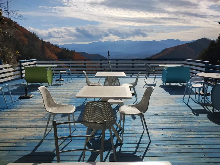 まあまあ山の上にあるので秩父の山々を眺め柄食事やお茶が出来ます。