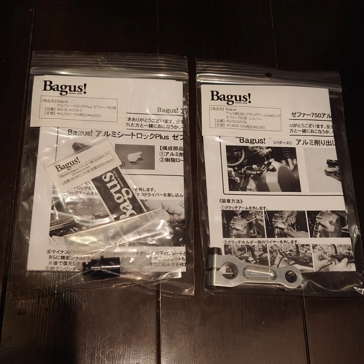 個人的に1番気になっていた「Bagus!」のシートロックとクラッチレリーズアームを無事にゲットしました。イベント価格でお得でした。