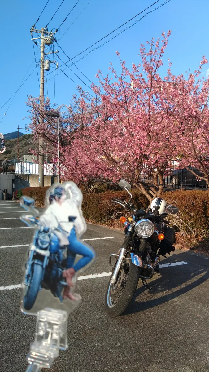 トップ > ツーリング行ってきたから見て > 西伊豆ツーリング🏍️ かみ~ゆ 2026/01/24 16:34 西伊豆ツーリング🏍️ アイキャッチ画像は、愛車W800のタンクに映る土肥桜🌸です。 晴れていたので、西伊豆までツーリング🏍️ 目的は、今年の干支に因んで馬ロックを観に🐴 先ずは、堂ヶ島に行き海を眺める🌊 風が強く遊覧船は休みでした。 堂ヶ島 バイクとの写真も 次に目的の黄金崎 馬ロックへ 先程より風が強く、バイクも倒れそうなほどでした。写真を撮り退散🏃 馬ロック 最後に土肥に寄る カナイメグさんと愛車W800と土肥桜🌸 ミラー越しの🌸も📸 オマケ 土肥金山に導入された、電動トゥクトゥク🛺 堂ヶ島 馬ロック 黄金崎 カナイメグ 土肥桜 いいね 共有する 共有する X facebook リンクをコピー コメントする 3 件の返信 (新着順) ミュートしたユーザーの投稿です。 投稿を表示 イッキメン【デイトナ社員】 2026/01/26 18:16 こんにちは!! 電動トゥクトゥク!! 普通に欲しいです(笑)!! 桜綺麗ですね〜! いいね 返信する ミュートしたユーザーの投稿です。 投稿を表示 かみ~ゆ 2026/01/26 18:21 イッキメン【デイトナ社員】 電動トゥクトゥクは、1/31~3/8まで限定でレンタルで乗れます。 操作は原付と同じようですね。 いいね 返信する ミュートしたユーザーの投稿です。 投稿を表示 takumax 2026/01/25 10:01 こないだモトライズって番組見てたら中野真矢さんが馬ロックに行ってましたよ~ いいね 返信する ミュートしたユーザーの投稿です。 投稿を表示 かみ~ゆ 2026/01/25 12:51 takumax モトライズ観て、🐴馬ロックに挨拶行かなきゃと思ってツーリングしました。 ほぼ地元ですからね🏍️ なすび🍆は持っていないです( *´艸`) いいね 返信する ミュートしたユーザーの投稿です。 投稿を表示 ジュンエスエス 2026/01/24 18:16 かみ~ゆ 土肥桜満開ですね‼️ こちらの朝は道路の温度計がマイナ6度でした。 今年1番冷え込みました😅 伊豆方面は暖かそうで羨ましい🌸 いいね 返信する ミュートしたユーザーの投稿です。 投稿を表示 かみ~ゆ 2026/01/24 20:03 ジュンエスエス 土肥桜🌸は満開です。来週からは河津桜ですかね。 伊豆は山に行かなければ、一年中バイク乗れます!帰りの峠越えは7時前で3度でした。 いいね 返信する