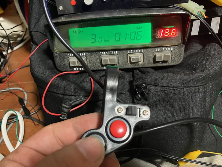私のNX250はコマ図ラリーに使うのでXRV750アフリカツインのデジタルトリップメーターを増設してあるのですが、途中何度もトリップメーターをリセットすることになるのでハンドルから手を離さなくてもリセットが出来るようにリモコンを作って装着してあります。