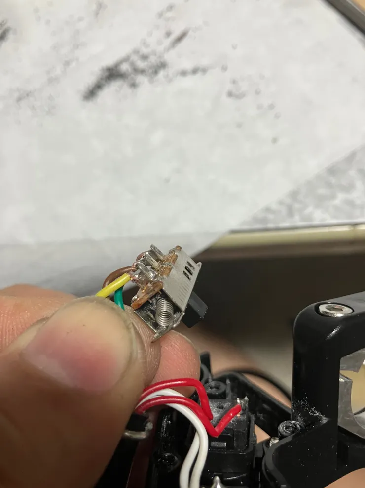スライドスイッチは指を離したら中立に戻るよう改造してあり、ここが一番手が入っている部分です。