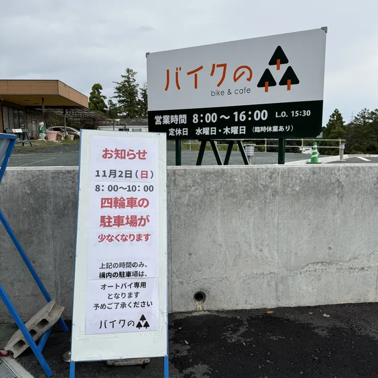 なお、駐車場が狭いので、4輪でお越しになると止められない可能性が大きいです。ご近所に駐車場もないので、ぜひオートバイでご来場ください。