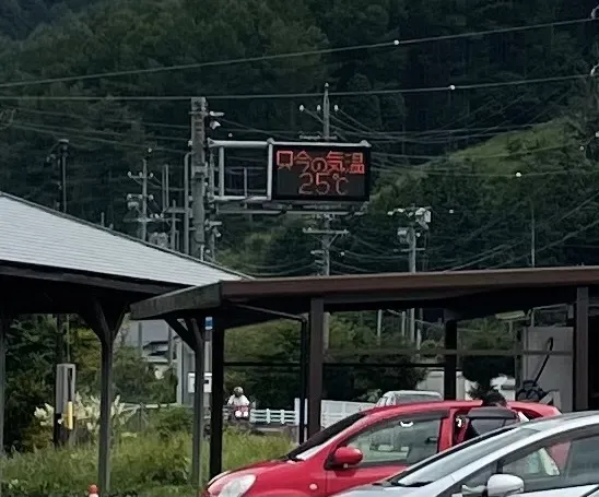 今回は7時前に磐田発、信州道の駅平谷に10時前着、気温は25℃で、ここからの折返しでギリギリかな
