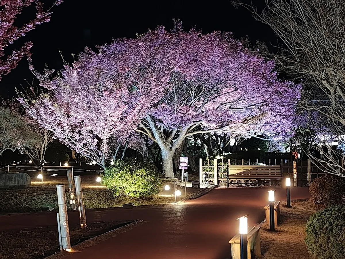 土肥金山の土肥桜ライトアップされて