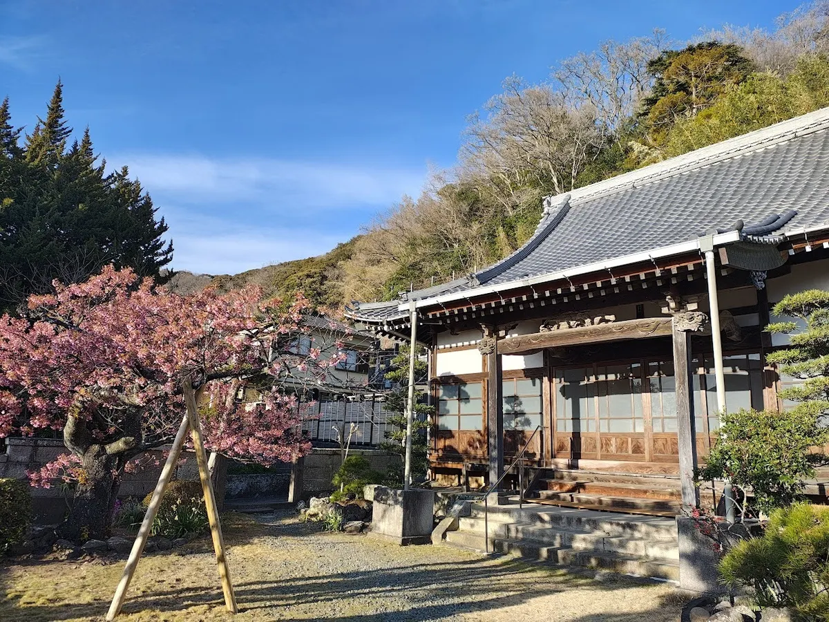 土肥桜が一番早く咲くの萬福寺と言うお寺だそうです。