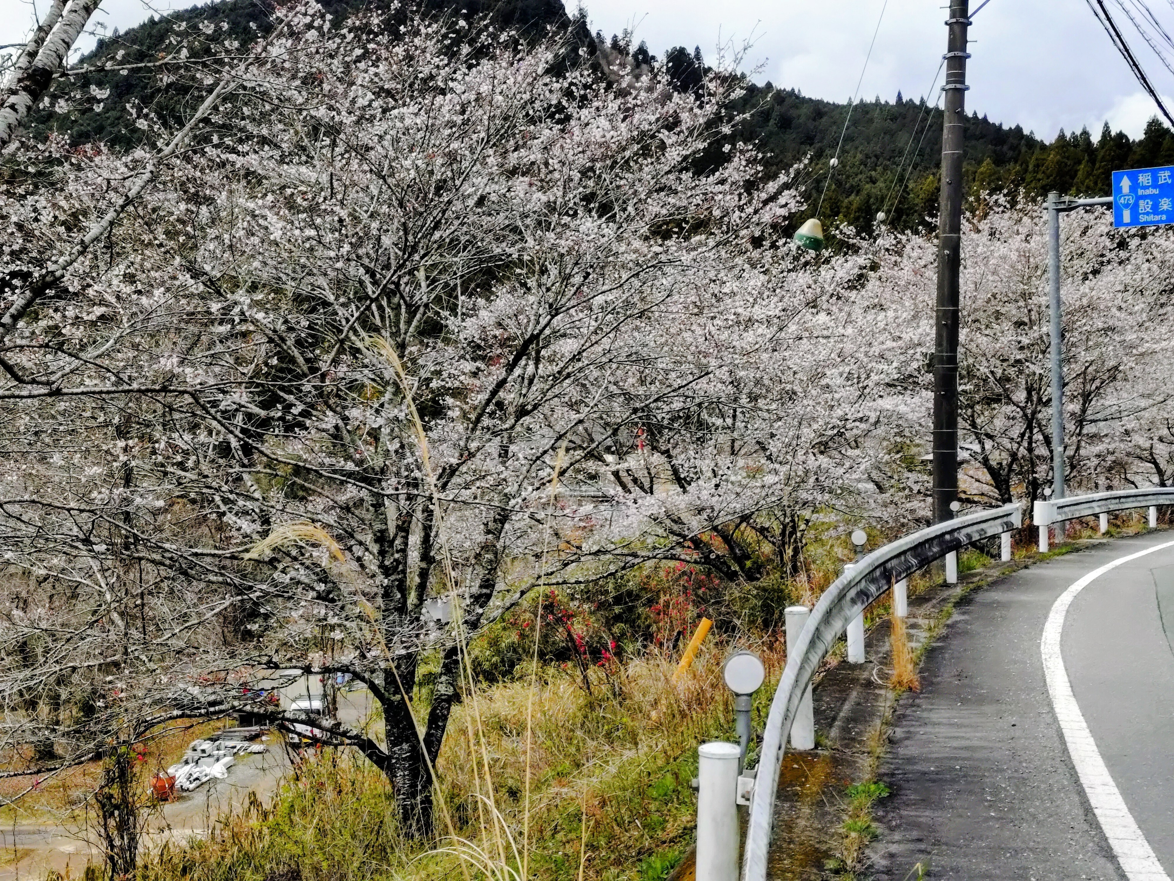 ファミリーマート 北設楽東栄町店付近の桜は満開!天気が良かったらもっと綺麗な写真が撮れたかな