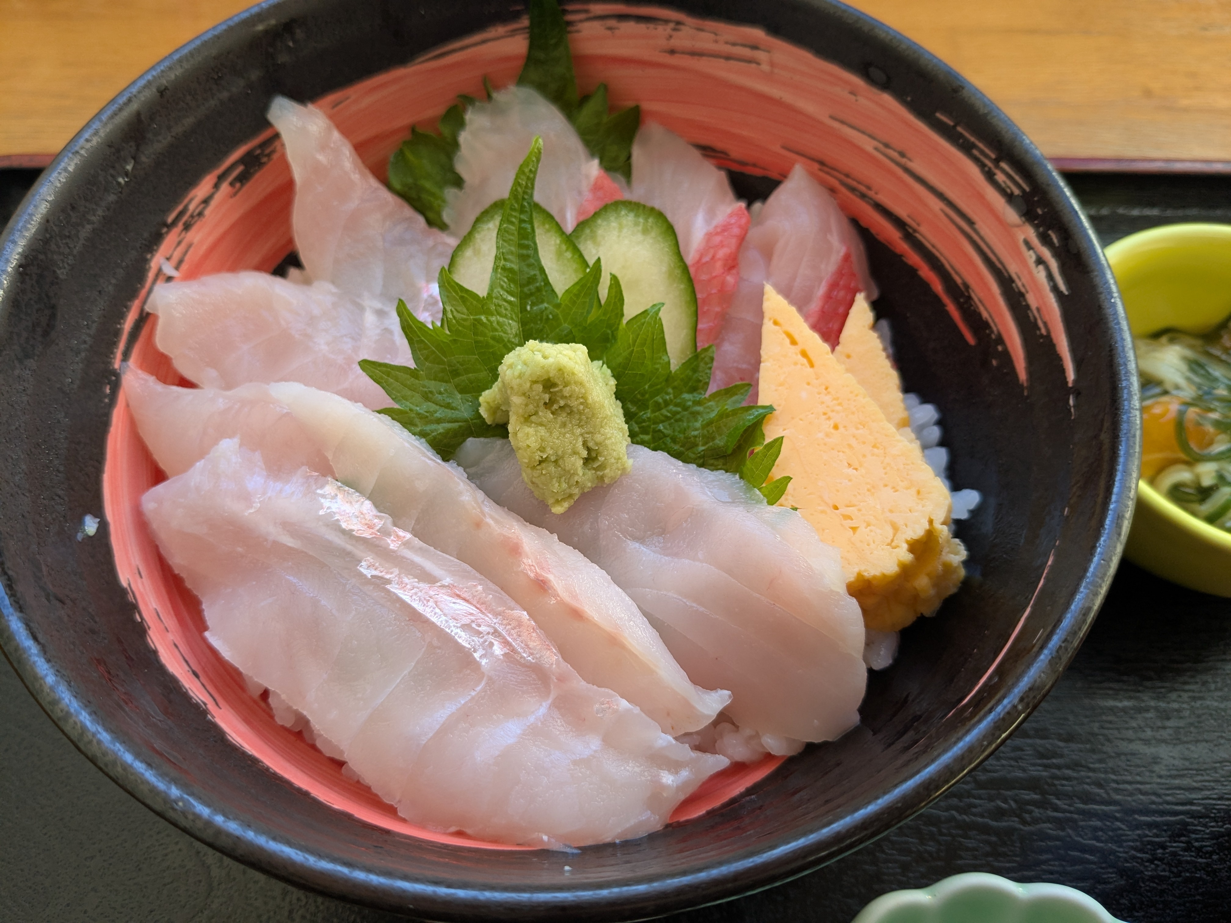 お目当ては朝から提供のある3色キンメ丼です🦭✨朝食にしてはお高いですが、「そのぶん昼メシ抜けばいいんじゃない?」と自分のおさいふを騙していざ注文。