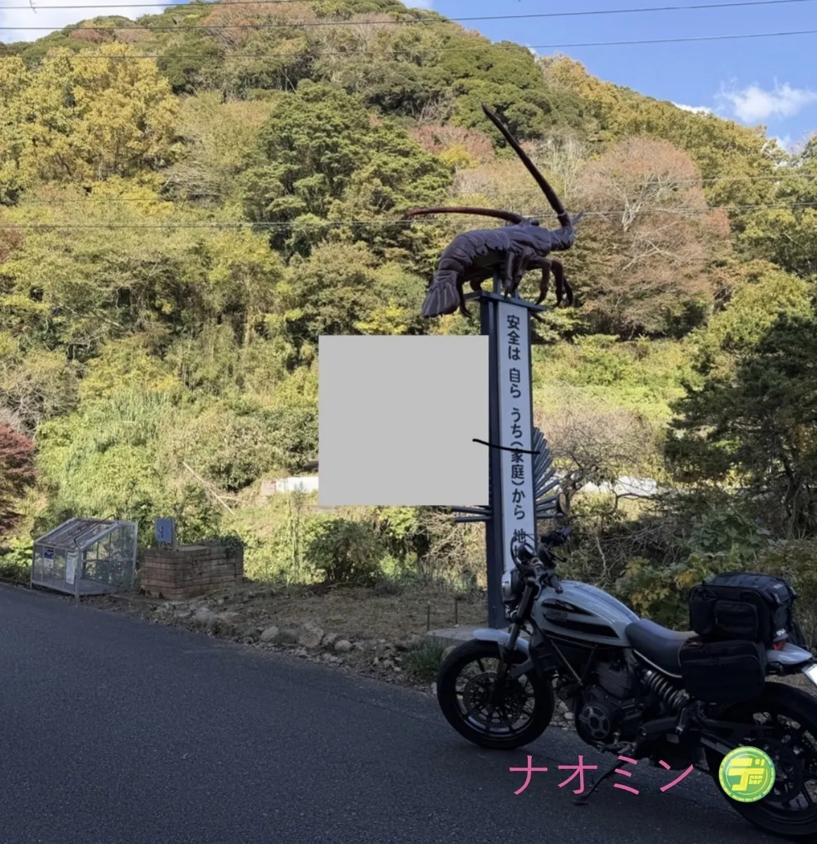 下田バーガー などグルメを巡りつつ、石廊崎から道を間違えて……でっかいエビの看板に引き寄せられるように辿り着きました。思わぬ聖地巡礼にウキウキしていたのも束の間、その先には難所蛇石峠が待ち受けていたのでした!