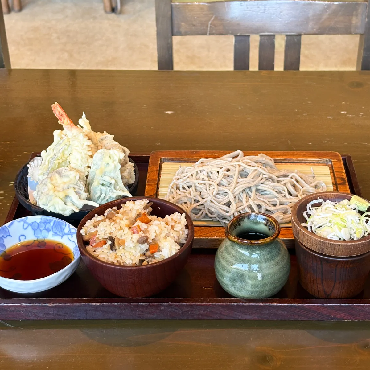 道の駅上野のそばにあるお蕎麦屋さん福寿庵で福寿定食をいただき、そばと五目ご飯と天ぷらのセットでお腹ぱんぱんです😋
