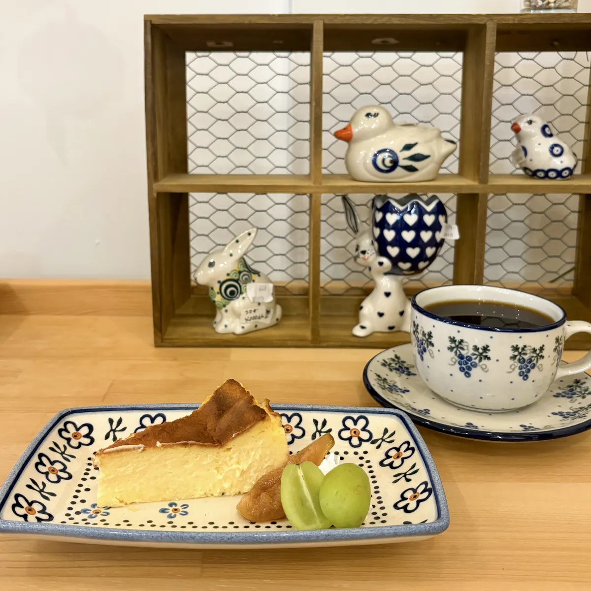 一通り眺めて同じ敷地にある「雑貨とCAFE AME」でお茶をいただき、バスクチーズケーキがめちゃ美味しかった💕