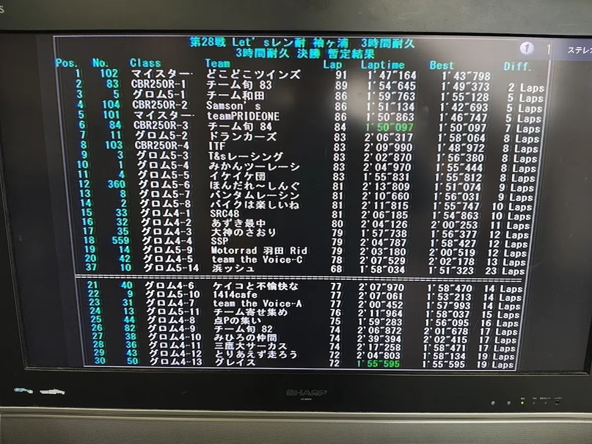 3時間耐久で2時間目からレコードラインがやや乾き出す。