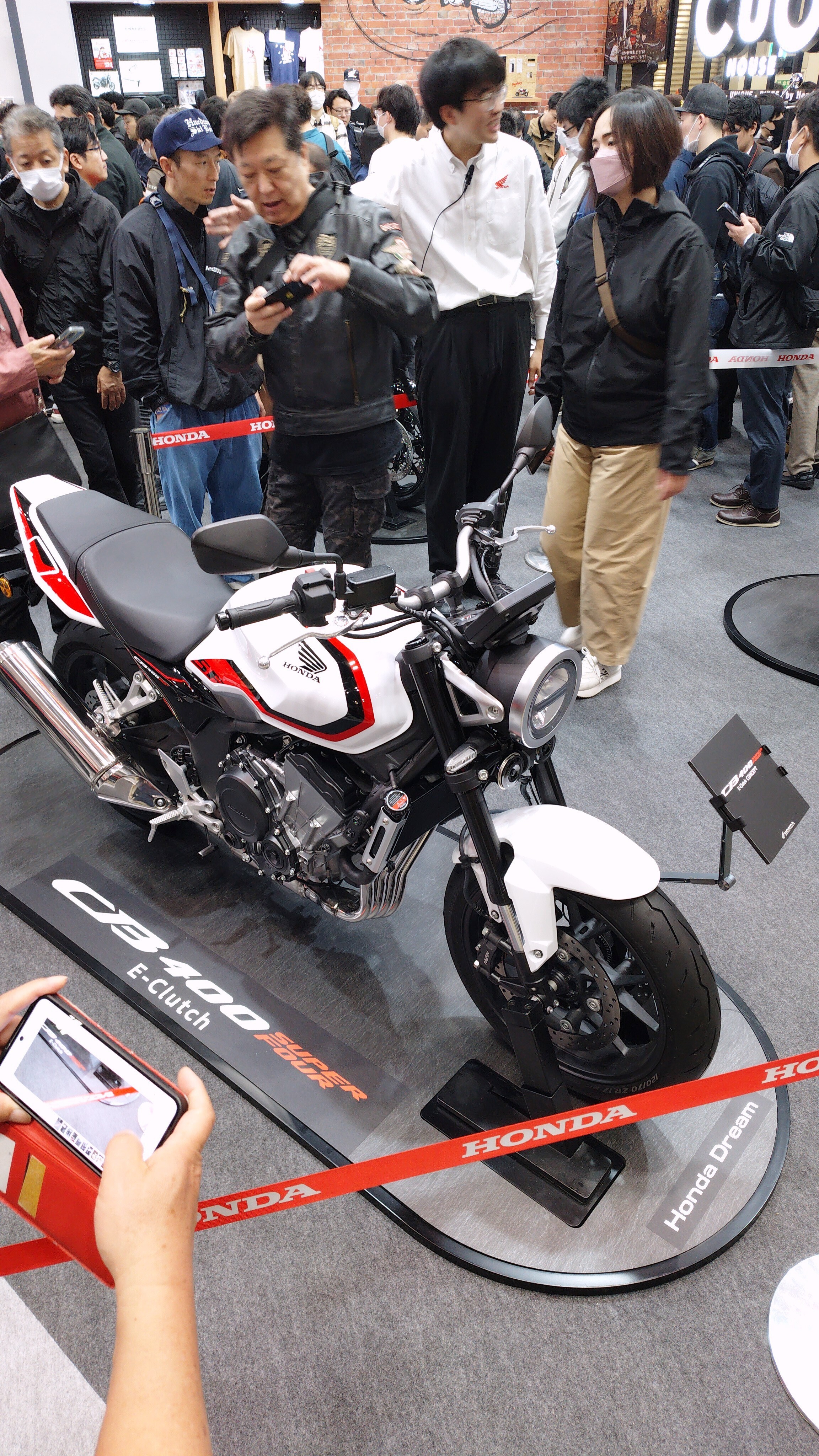 CB400スーフォアは大人気ですね。こんなおバイク待ってた人は多いんでしょね。個人的には白がイイかな。