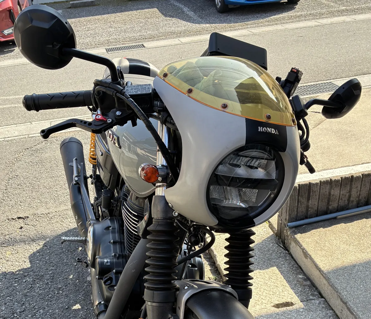 トップ > カスタムしたから見て > リアショックとウインカー交換 taka 2026/02/22 17:27 リアショックとウインカー交換 昨日(2/21)にホンダドリームでの点検が終わり、気候も暖かく、本当ならば何処かに行きたかったのですが、町内会のお仕事があったので、午前中に作業して、リアショックとウインカーを交換。 ショックは、少しショートのヤツを付けて、併せてフロントホークも10mmほどダウン。 ウインカーは、昔ながらのヨーロピアンに変更。 なかなか雰囲気が出てきたと自己満足😆 リアショック ウインカー ヴィンテージ感出ているかな? いいね 共有する 共有する X facebook リンクをコピー コメントする 1 件の返信 (新着順) ミュートしたユーザーの投稿です。 投稿を表示 まるきよ【デイトナ社員】 2026/02/23 17:30 taka このGB350、マッチョな雰囲気でカッコいいです!リアショックのイエローが効いてますね! いいね 返信する ミュートしたユーザーの投稿です。 投稿を表示 taka 2026/02/24 08:35 まるきよ【デイトナ社員】 コメントありがとうございました。 安物なんで、今後どうなるか分かりませんが、とりあえず気に入ってます。 いいね 返信する