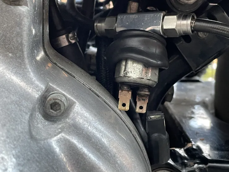 ブレーキスイッチはドラッグスペシャリティ社製を購入。後期モデル用なのか元々着いていたスイッチと形状が異なりますが、レトロフィットするみたいで装着に問題ありませんでした。めちゃくちゃ作業がやりにくいところですが作業自体は簡単。バッチリ点灯するようになりました。お盆休み中に、走りに行けるかな。
