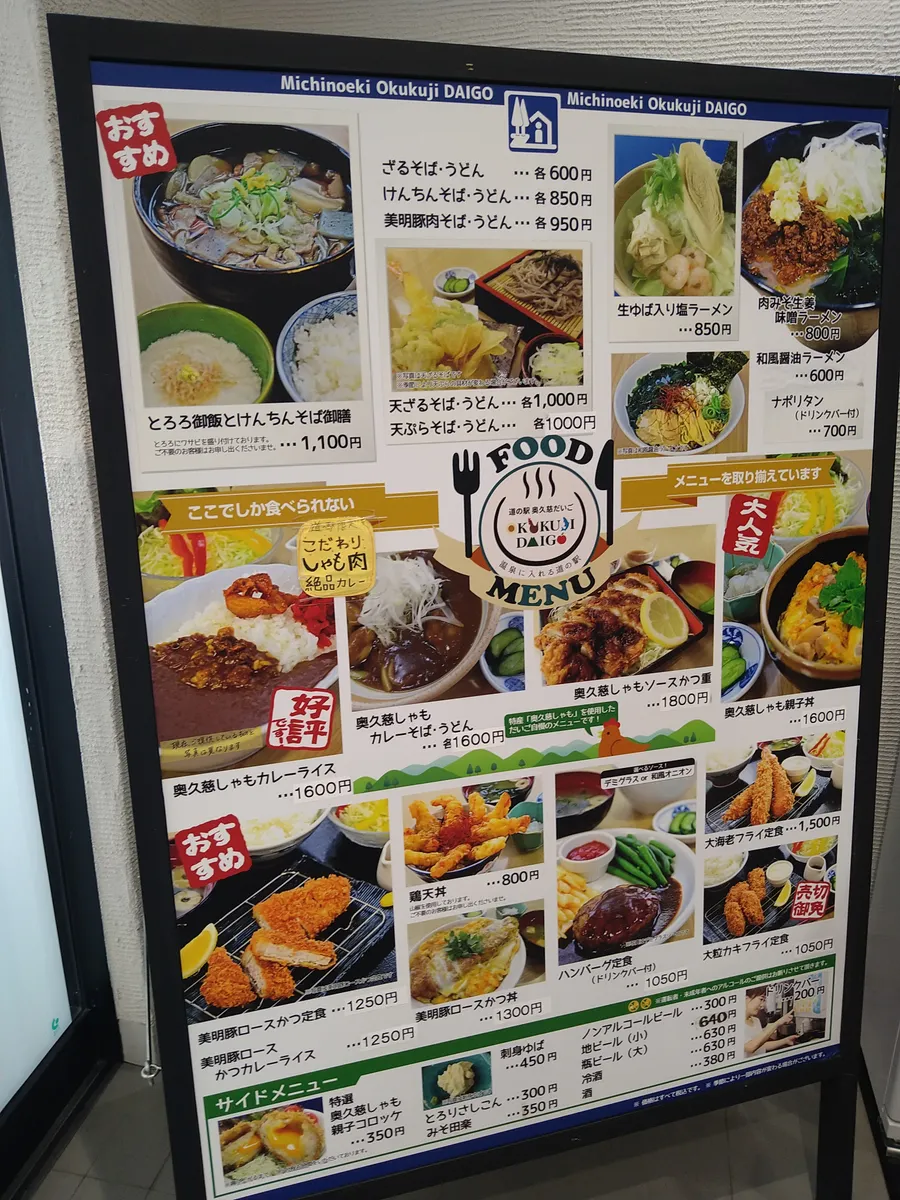お昼の時間帯だったので、ここでランチ休憩にしようとメニューを見る。