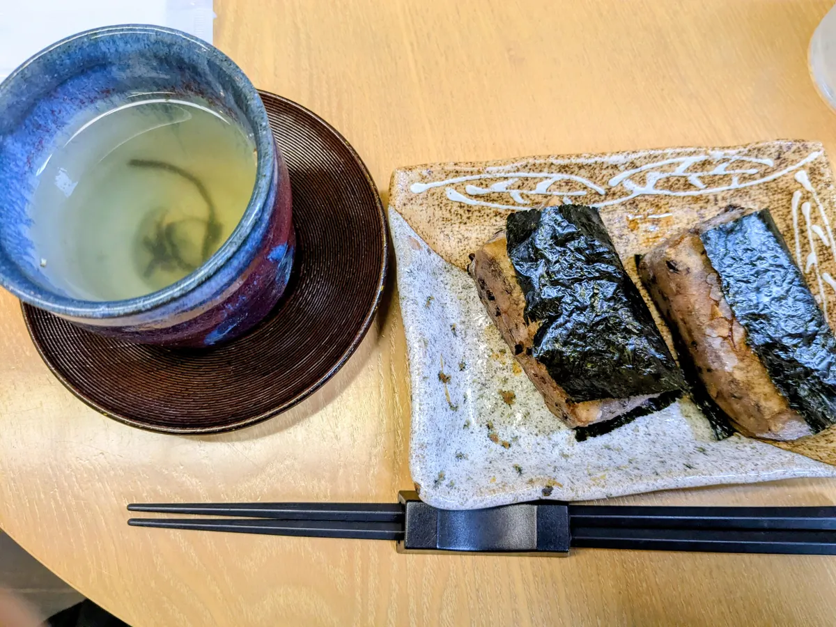 カフェヒロノさんでオヤツタイム。黒米もち&しいたけ昆布茶はほっこりするおいしさ。