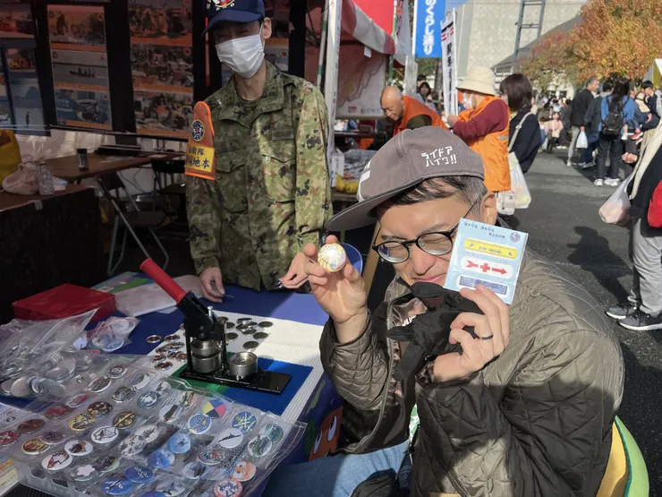 自衛隊さんのブースでは缶バッチ作りができるということで、イッキメンがチャレンジしてました!