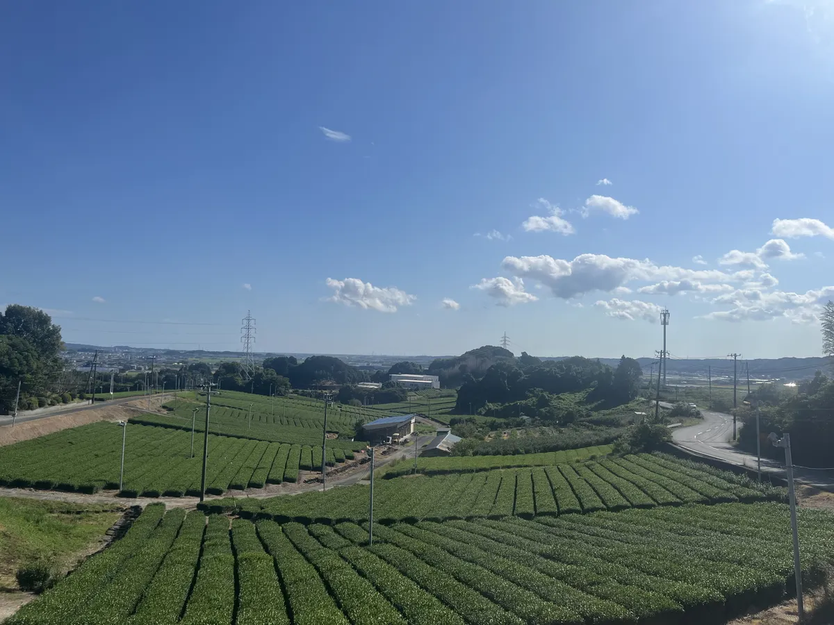 ダチョウ並みの視力があれば、茶畑のはるか先の遠州灘が望めるかも?
