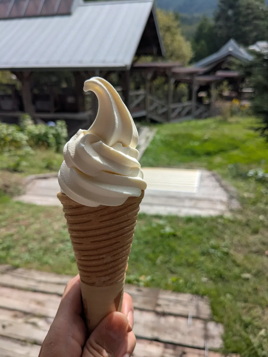 ソフトクリームで一服🫱キノコはナシ。次、信州平谷!