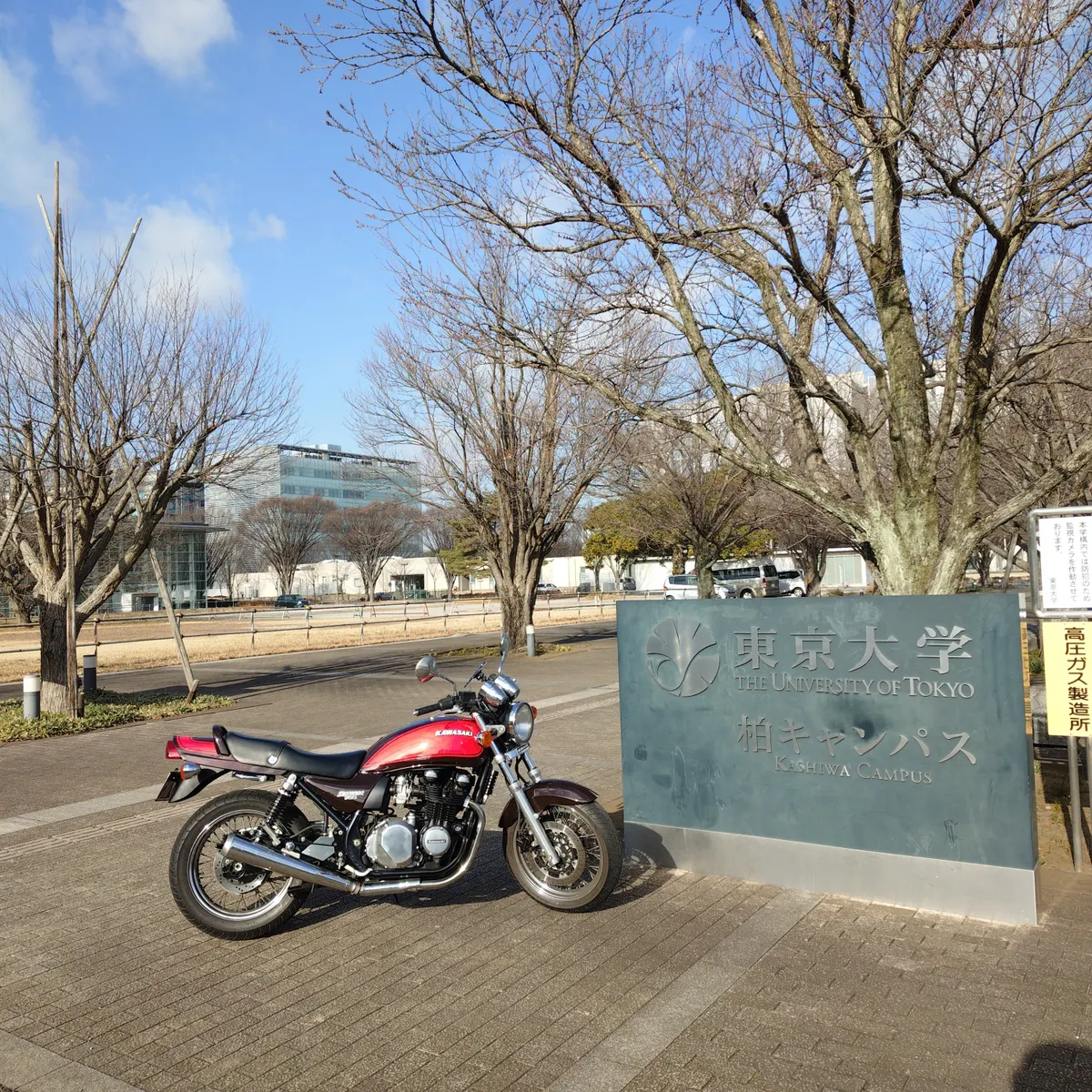 走り回ったあと母校(大ウソ)の前で記念撮影。。