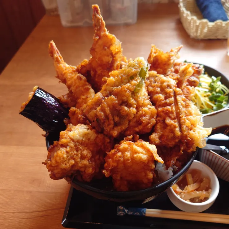 ランチは以前から調べていた「丸福コパン」にてわんぱくな天丼を頂きました。相当なボリュームとのことだったので、前日から食べる量を調整しました。が、とんでもない量で腹パンになりました。天ぷら爆盛状態のどんぶりにサラダ、小鉢、お新香、味噌汁が 付いて¥1,500でした。接客もめちゃくちゃ丁寧で気持ちイイお店です。