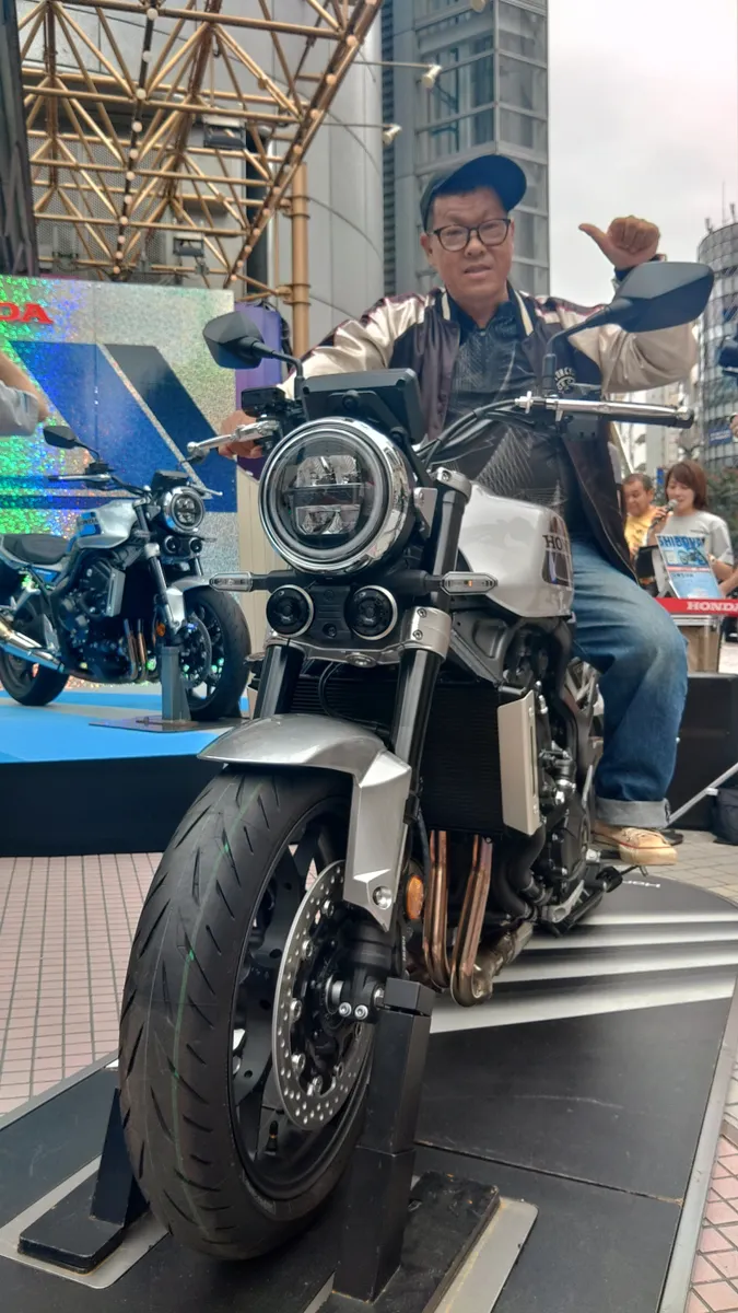 トップ > いろんなイベント > CB1000F展示会 かみ~ゆ 2025/10/15 13:30 CB1000F展示会 月曜の祝日に用事があり東京に 渋谷でバイクイベントがあったので寄ってきた。 『CB1000F スペシャル展示 in SHIBUYA』です。 決して、バイク女子目あてではありません🤩 新型CBは足付きは普通です。シートが、フカフカです👀‼️ 跨がりしてきました🏍️ ちょっと欲しくなります。試乗もしてみたいな✨ 最後に 静岡出身インフルエンサーのAOさんです。 茶ミーティングに遊びにきてました。 ao CB1000F HONDA いいね 共有する 共有する X facebook リンクをコピー コメントする 2 件の返信 (新着順) ミュートしたユーザーの投稿です。 投稿を表示 TeamPRIDEONE 2025/10/15 22:31 シート高795㎜は良いですね。 MT09トレーサー17年式は845㎜あるのでちょい高いです。 YZF-R25は780㎜ 795㎜なら私の足の長さでも安心。 いいね 返信する ミュートしたユーザーの投稿です。 投稿を表示 まきお 2025/10/15 22:04 今時珍しくシート高が800mm切りなんですよね。 いいね 返信する ミュートしたユーザーの投稿です。 投稿を表示 かみ~ゆ 2025/10/15 22:22 まきお そうなんですよね、795mmです。 いいね 返信する