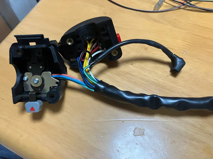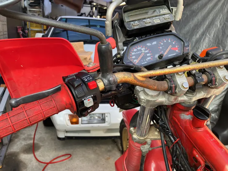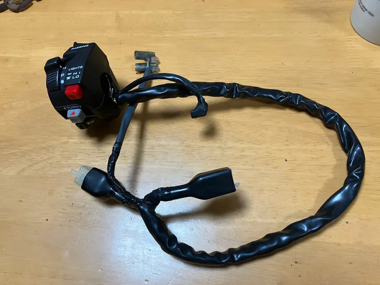 NX650ドミネーターのハンドルスイッチの表面劣化が酷くて印刷された文字なんか一個も見えないので、デイトナさんのモンキー/ゴリラ用のスイッチが同型で同じ機能なので流用してみました。