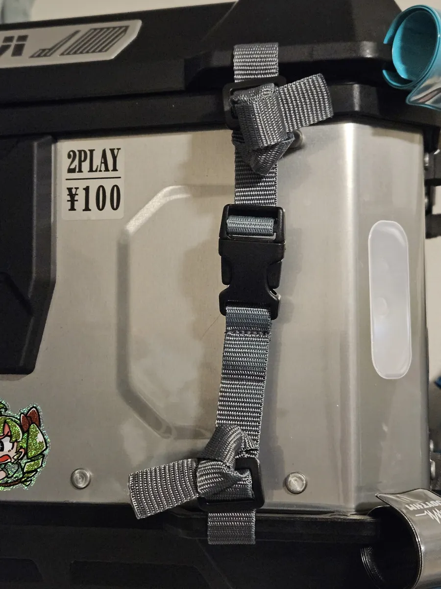 このリアボックスは取手がないので持ち運ぶ時めちゃ大変だったが、これつけたことによりベルトを持って持ち運べるようになったという棚ぼた🙏( ˘・ω・˘ )