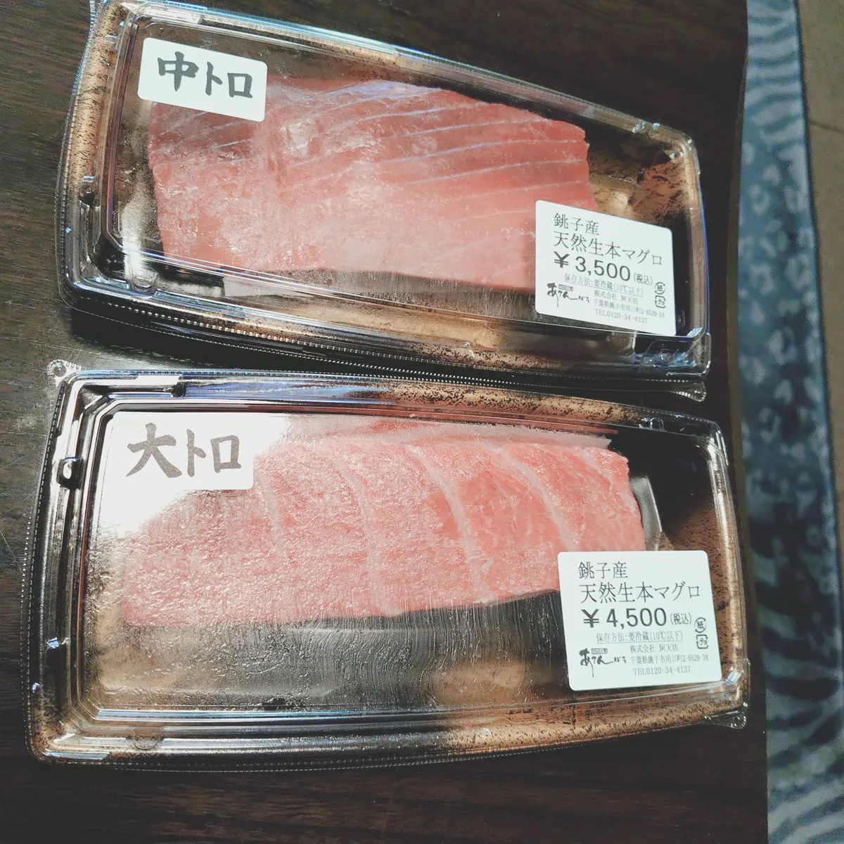 中トロ、大トロはそれなりの金額ですが、ふたつ買ったカタマリはひとつ¥2,800でした。めっちゃ重かった。。