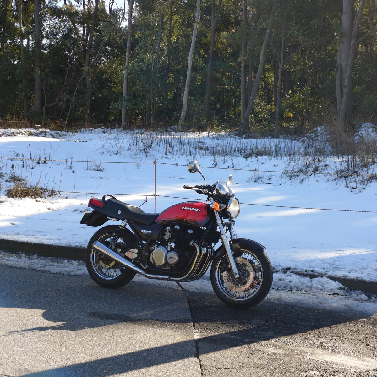 日陰のトコは全然雪が溶けてなかったです。なのでブラインドコーナーはめっちゃ慎重に走りました。