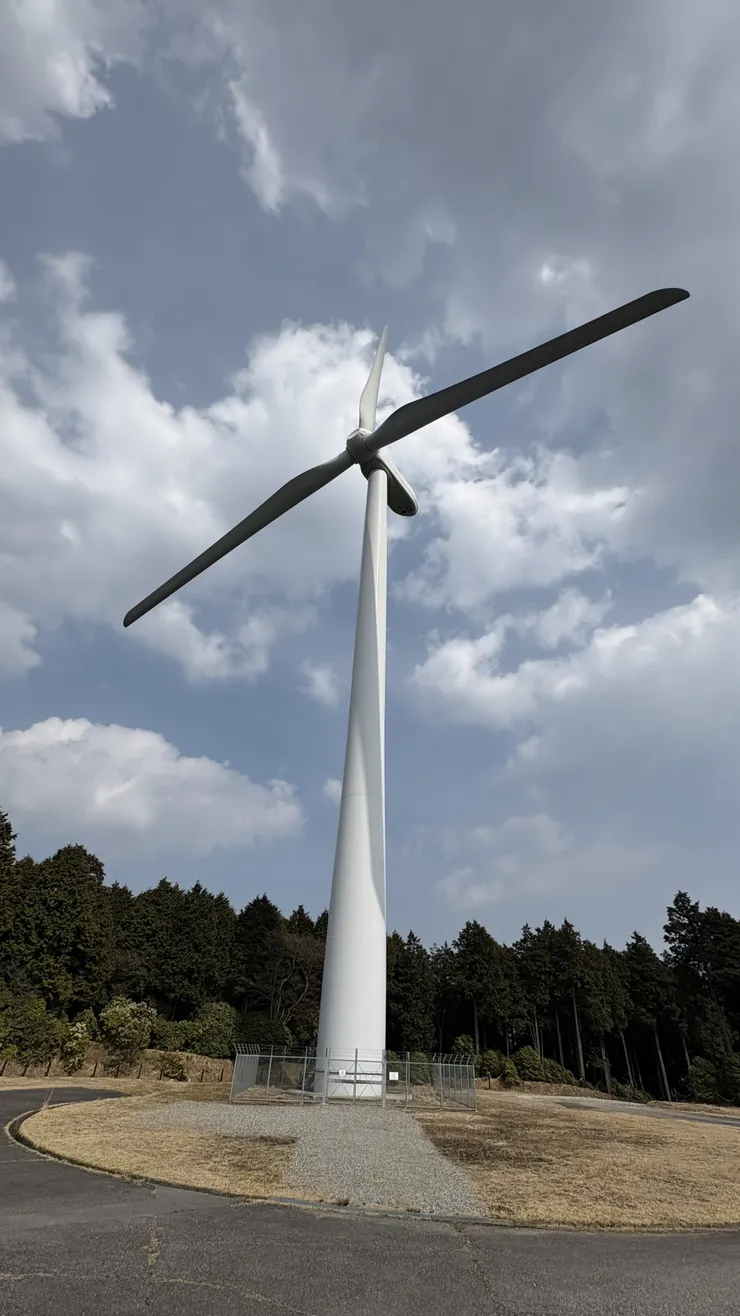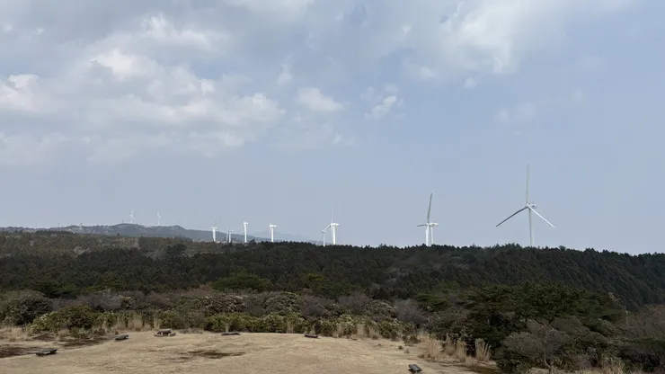 晴れてはいたのですが若干靄がかかった天気でしたので海までは見ることはできませんでしたが、風力発電の風車が回る迫力の様を間近で見ることができました💡