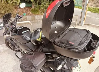 サイドバックもDAYTONA製ですが、補助のフレームが要らないタイプでSV650に、しっかり着いて高速でもブレたりしませんでした。脱着も簡単!脱いだノーランのヘルメットはヘンリービギンズのバックを取り出して、盗難防止の為にGIVIBOXの中に入れれば安心!このツーリングでDAYTONA製品にお世話に