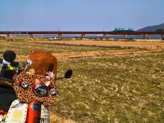 由良川鉄橋 京都丹後鉄道宮舞線の由良川鉄橋🚃河口に架かる鉄橋到着後5分くらいで電車が来ました❗️これを逃すと30分以上電車が来ないみたいでラッキー✨電車が無くても綺麗でいい場所です😊